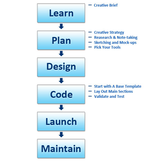 A basic website development process includes: